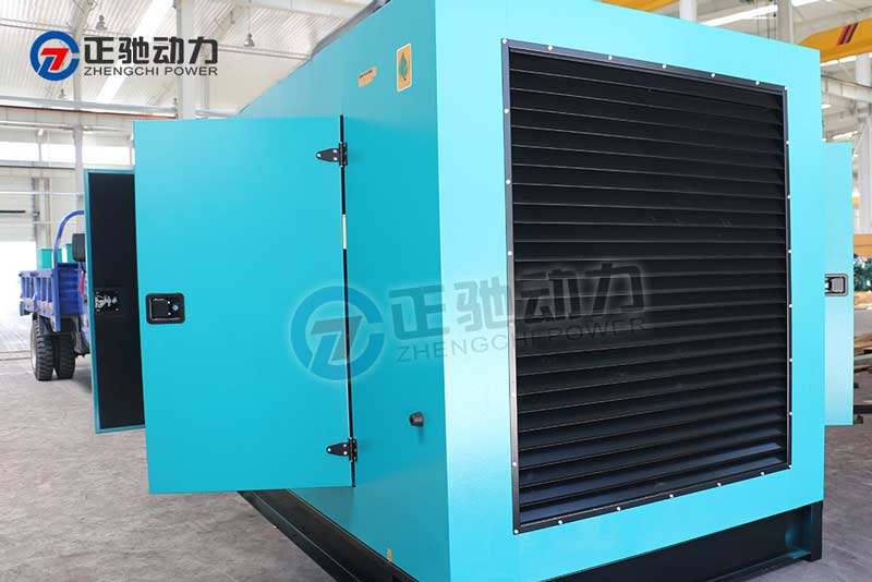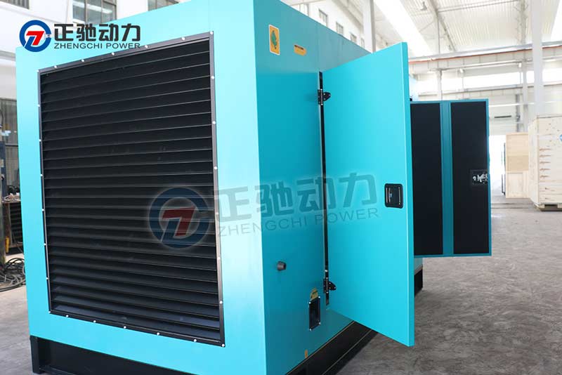 100KW康明斯静音柴油发电机组采用蓝色箱体,两面双开门设计。宽面百叶窗设计,既有效降低噪音,又不影响排风/进口,保证机组正常运转。
